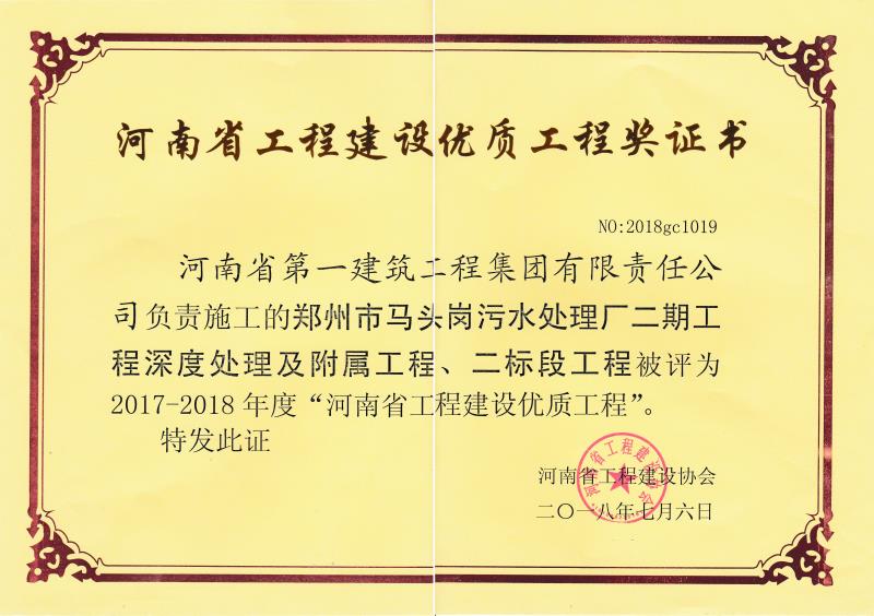 郑州市马头岗污水处理厂二期工程深度处理及附属工程、二标段工程(河南省工程建设优质工程)