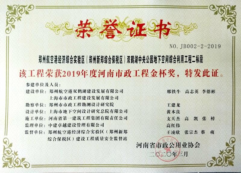 郑州航空港综合实验区(郑州新郑综合保税区)双鹤湖中央公园地下空间综合利用工程二标段(河南省市政金杯奖)