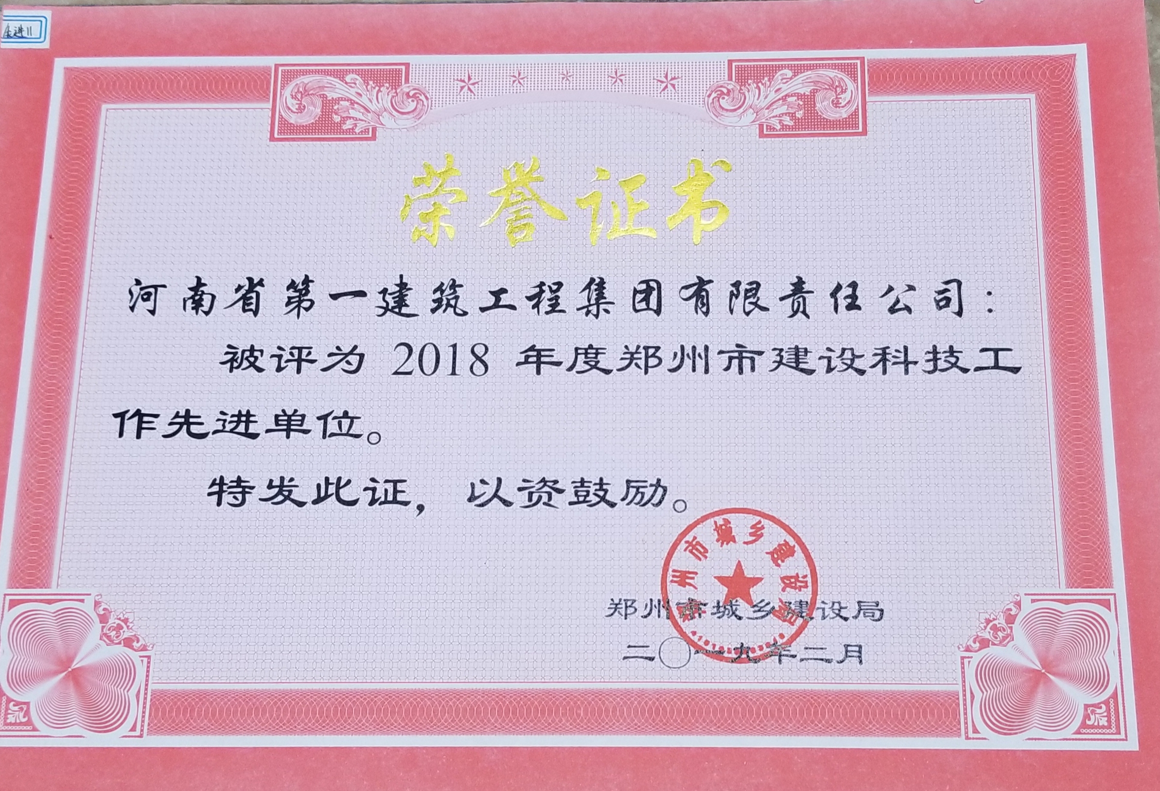 2018郑州市建设科技工作先进单位