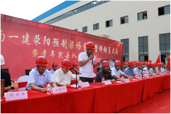 大会动员和号召河南一建荥阳预制梁场全体员工众志成城、艰苦奋斗、全力冲刺,发挥主观能动性,做到“俯下身、沉下心”,确保郑州市四环线及大河路快速化工程预制节段梁生产任务保质保量按时完成。
