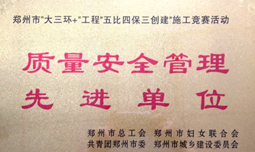 由集团公司第十二项目部承建的郑州市农业路快速通道工程第四标段,日前被评为郑州市“大三环+”工程“五比四保三创建”施工竞赛活动质量安全管理先进单位。(王宝亭)
