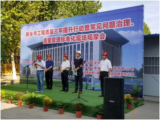 新乡市在集团公司新乡医学院图书信息楼工程举行质量三年提升行动暨常见问题治理、质量管理标准化观摩会
