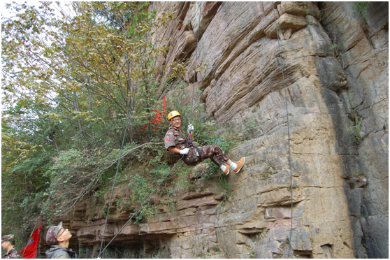 下午,在崖壁进行了突破自我的挑战活动——悬崖速降,在二十多米的崖顶,利用绳索和装备,降至崖底。