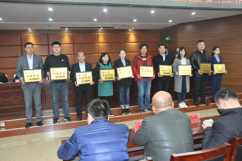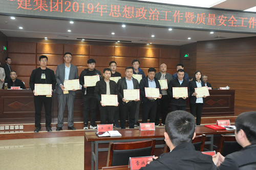 集团公司党委委员、总经济师陈文宇宣读了关于表彰2018年度先进单位、先进集体、先进劳务作业队、公司标兵、先进个人的决定。第一项目部等10单位被评为2018年度先进单位、中原银行大厦项目部等5项目部被评为公司先进集体、韩卫东劳务作业队等8个劳务队被授予公司先进劳务作业队、李太白、赵婷婷等12人被授予公司标兵,唐汝得等62人获得一等功、郑孝青等95人获得个人二等功、张海燕等85人获得个人三等功,曹佳等11人获得优秀通讯员称号。