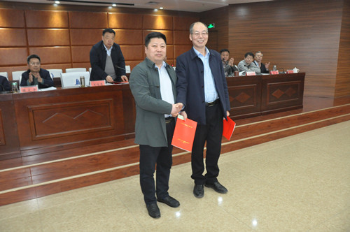 各个土建分公司、项目经理部经理分别向集团公司总经理刘定国递交了管理工作目标责任书并合影留念。