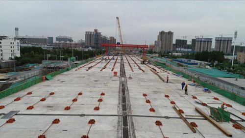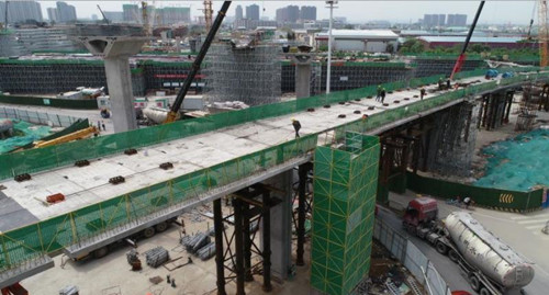目前,二标段四环主线桩基、承台、墩柱施工已全部完成;0号块施工完成近九成;现浇箱梁已完成16联,剩余5联计划于5月20日前施工完成。主线预制节段梁已进入全线拼装关键期,已经投入龙门吊6台,履带吊及大型汽车吊16余台,现场高峰期施工人员达2800余人,四环主线节段梁拼装施工已全线展开,吊装施工现场如火如荼。