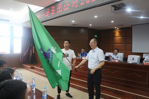 在庄严肃穆的授旗仪式上,集团公司董事长、总经理、党委书记、刘定国亲手将代表河南一建的大旗交给新员工旗手。旗手带领全体新员工庄严宣誓:“为了自己,为了河南一建的美好明天,努力、努力、再努力”。