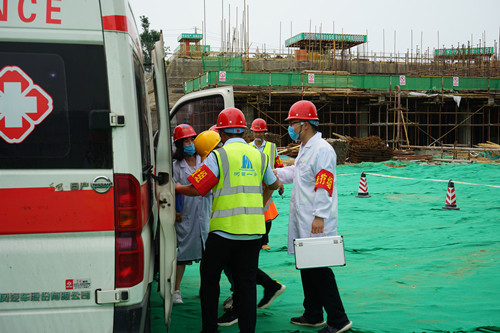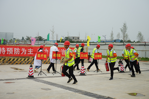 6月24日上午,第五项目经理部丁庄安置区建设项目组织举行了消防应急演练,城建集团总经理薛松森、集团公司副总经理杜巍及相关单位代表观看了演练。(摄影:刘钊源 作者:赵润瑞 程浩博)