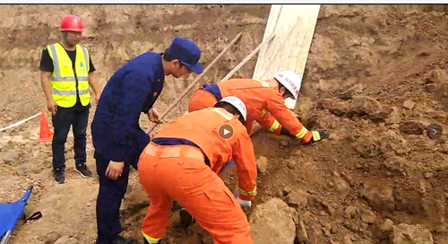 6月27日,一分公司周口市未来家园B区项目部进行了“基坑坍塌应急演练”活动,周口港区领导、住建局局长、消防支队领导亲临指导坍塌演练。(王佳)