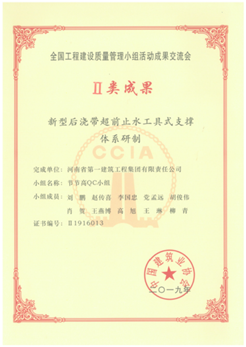第十二项目经理部QC小组获全国Ⅱ类成果奖