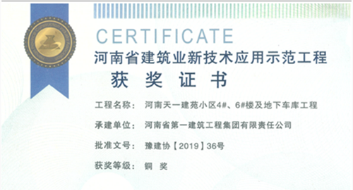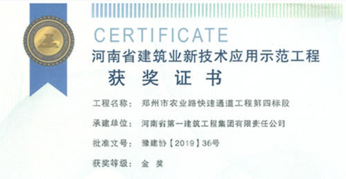 日前,第十二项目部承建的郑州市农业路快速通道工程第四标段及河南天一建苑小区4#、6#楼及地下车库工程分别获得河南省建筑业新技术应用示范工程金奖和铜奖。(赵欣)