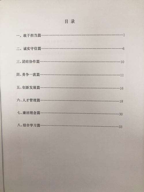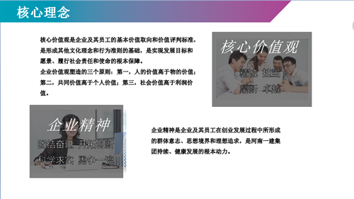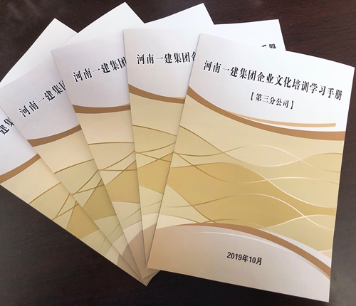 二是设计、编制并印发了《河南一建集团企业文化培训学习手册》。学习手册共分为敢于担当篇、诚实守信篇、团结协作篇、勇争一流篇、创新发展篇、人才管理篇、廉洁理念篇和综合学习篇八个部分。每一部分都有数篇具有代表性的文章来表达我们的理念,比如在“人才管理篇”中选编了《没有人才,一切归零;没有道德,人才归零》,希望员工在学习的同时能够更好的理解、践行企业文化建设。