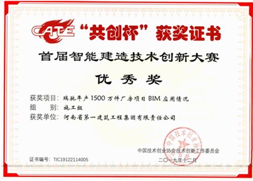由中国技术创业协会技术创新工作委员会主办的2019年首届“共创杯”全国智能建造大赛于12月29日在北京圆满结束,经过为期6个多月的初评/答辩/终评的激烈角逐,我公司第四项目经理部在全国1600多项参赛作品后中脱颖而出,参赛的第四项目经理部“瑞驰年产1500万件厂房项目BIM应用情况”荣获施工组BIM应用优秀奖。(李自超/朱超凡)
