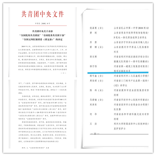 日前,共青团中央做出了《关于表彰“全国优秀共青团员”“全国优秀共青团干部”“全国五四红旗团委( 团支部) ”的决定》,授予张美玲等505 名同志 “ 全国优秀共青团员”称号。在受到表彰的505 名同志 “ 全国优秀共青团员”中,集团公司第六项目部的穆宁伟名列其中。据了解,穆宁伟是集团公司历史上第一个获得“全国优秀共青团员”荣誉称号的共青团员。(安琪)
