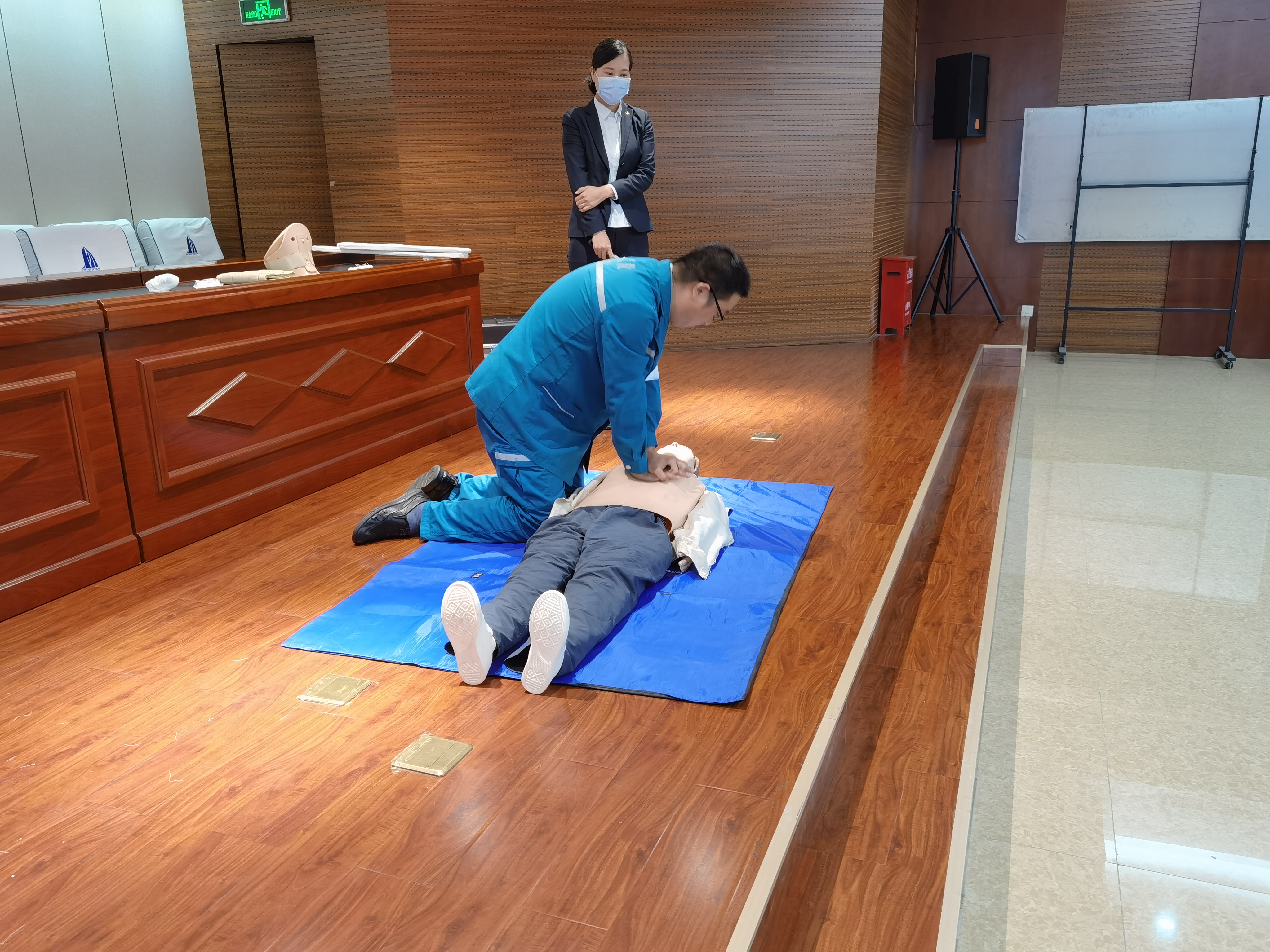 本次培训将应急过程中的各环节向大家进行了讲解,包括预案、准备、程序等理论知识,相关医疗救治技能以及特殊情况下的处置应对措施,各单位生产安全副经理、主任工程师、相关科室、劳资员及相关人员共计120余人参加了现场培训,各工程项目全体管理人员参加了线上培训。