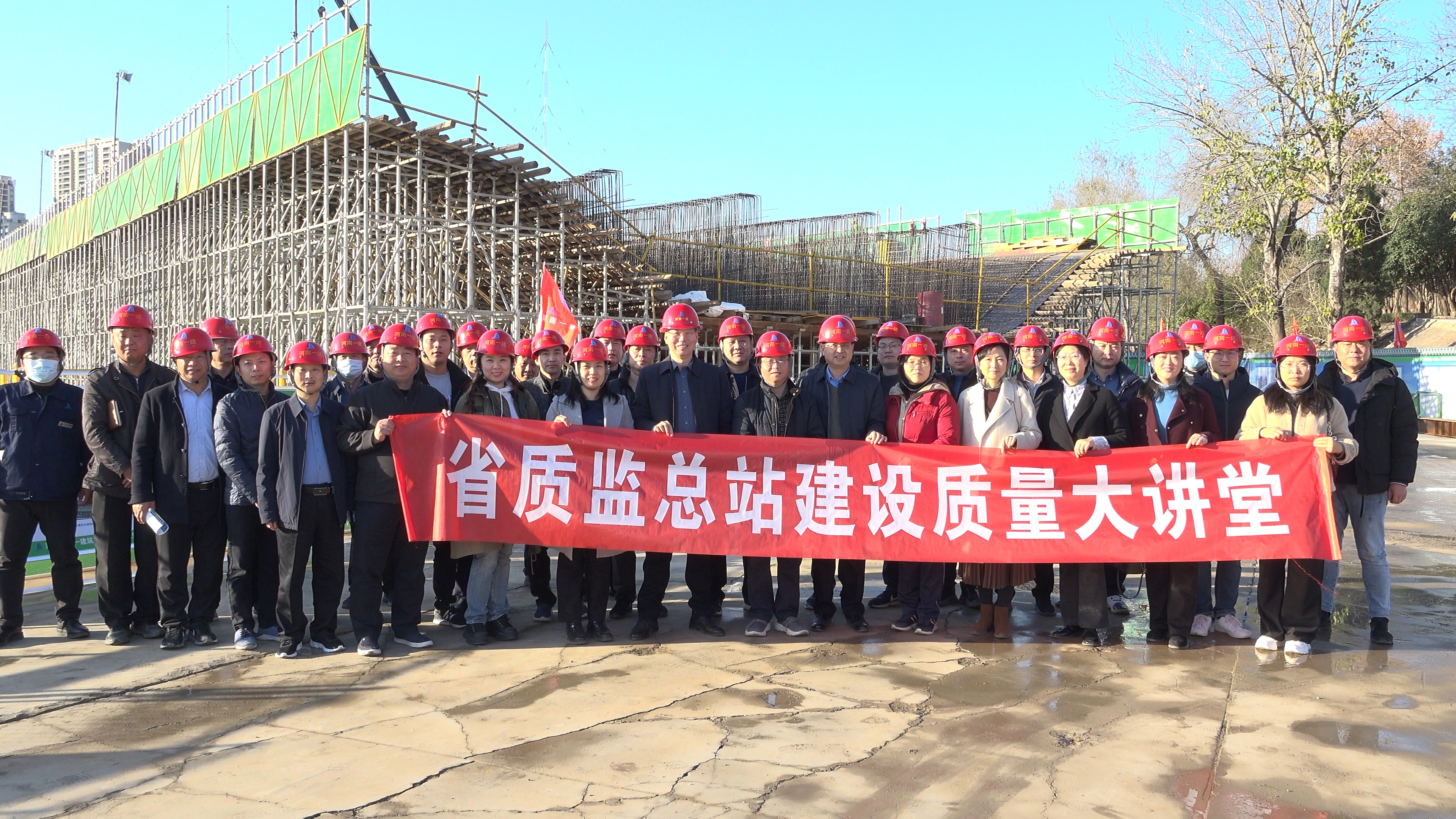 12月3日下午两点半, 河南省建设工程质量监督总站组织全站人员在我公司第三分公司承建的郑州市西站路西延(金水路西延)跨西流湖桥梁项目举行第三期建设质量大讲堂活动。省总站站长郝树华主讲,郑州市城乡建设局副局长王少旭,郑州市市政工程质量监督专业站领导孙海胜以及集团公司董事长刘定国、副总经理杜巍等参加。