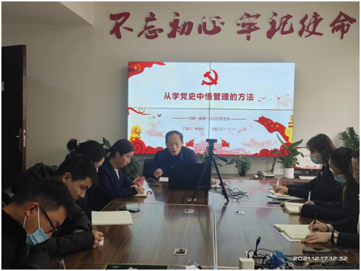 12月17日,第一分公司举行学习党史教育专题培训,第一分公司党支部书记焦瑞生通过视频会议以“从学党史中悟管理的方法”为题进行讲解,培训主要从党史中“学习抓工作、学习开会、学习调查研究、怎么学习……”等八个方面学习了党史中管理的方法。(王佳)