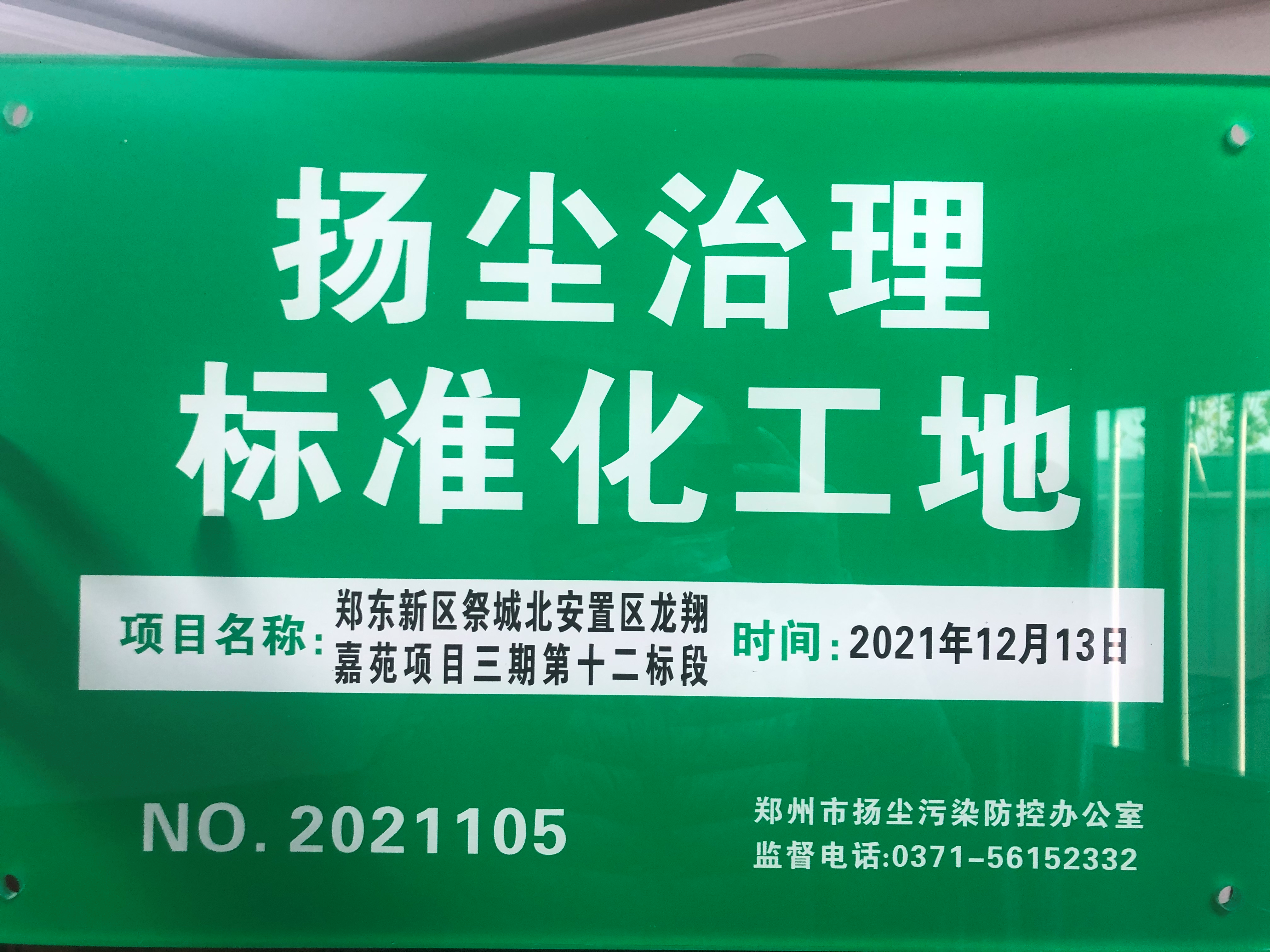 12月17日下午,郑东新区控尘办在第八项目经理部承建的祭城北安置区龙翔嘉苑三期第十二标工程举办了第二批绿牌工地授牌仪式并组织“差工地”进行现场观摩, 第十二标工程等3个工程被授予“扬尘污染治理标准化工地”标牌。(史志伟)
