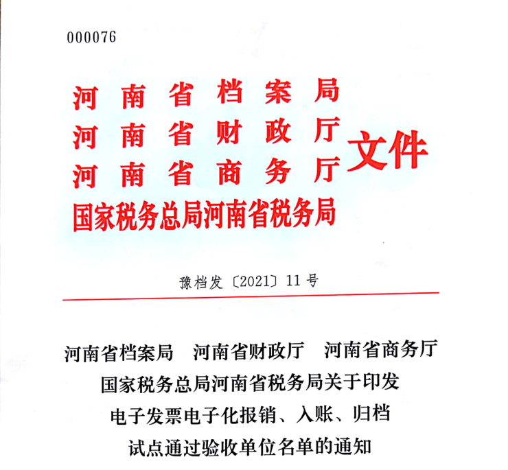近日,集团公司顺利通过了全国第三批增值税电子发票电子化报销、入账、归档试点工作的验收,成为河南省首批13家通过验收的单位之一,推进了电子发票的应用和推广,助力国家数字经济发展。