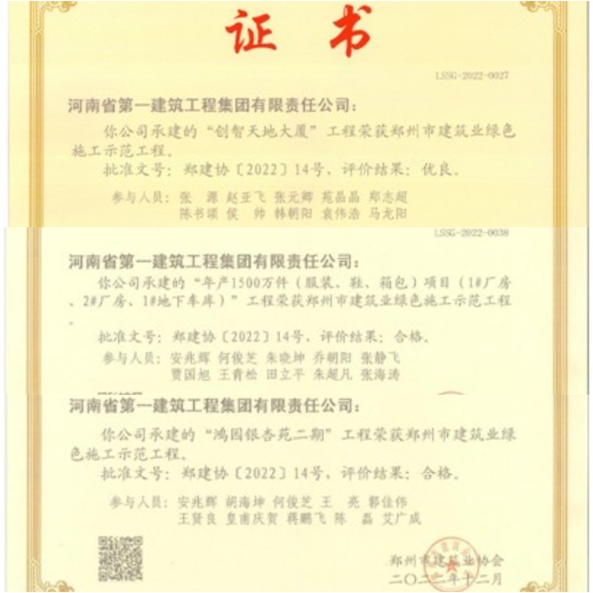日前,郑州市建筑业协会公布了2022年第二批郑州市建筑业绿色施工示范工程获奖名单,集团公司共有3项工程获奖: